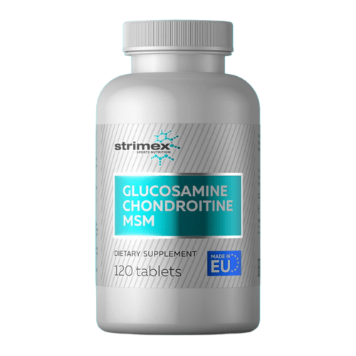 Strimex Glucosamine-Chondroitine-MSM - комплекс хондропротекторов на основе глюкозамина, хондроитина и метилсульфонилметана. Продукты на основе глюкозамина предназначены для защиты суставов и поддержания их подвижности. В качестве диетической добавки они рекомендуются в случае дегенеративных заболеваний (артроз), для улучшения симптомов остеоартрита, для снижения болевых ощущений, ограниченной функциональности суставов как строительный элемент суставов и связок. Глюкозамин и хондроитин являются составными компонентами соединительной ткани и вырабатываются в самом организме. Оба этих вещества также входят в структуру синовиальной жидкости, которая питает хрящи и улучшает скольжение поверхности суставов. Помимо общего улучшения состояния ткани связочного аппарата, глюкозамин и хондроитин способствуют регенерации и улучшению амортизации хрящей. Можно найти огромное количество научных исследований по поводу эффективности этих веществ, причем исследований с участием разных фокус-групп – например, спортсменов или людей с заболеваниями суставов. В целом, можно сделать вывод о том, что глюкозамин и хондроитин оказывают положительное влияние на соединительную ткань и могут использоваться как поддерживающие средства, но не являются полноценными лекарствами. Для сохранения связок и суставов, производится Glucosamine-Chondroitine-MSM – из названия видно, что помимо глюкозамина и хондроитина здесь добавлен метилсульфонилметан (MSM), который часто комбинируется с этими веществами. MSM обладает противовоспалительными свойствами и улучшает проницаемость клеток для доставки питательных веществ, что в совокупности увеличивает эффективность хондроитина и глюкозамина.