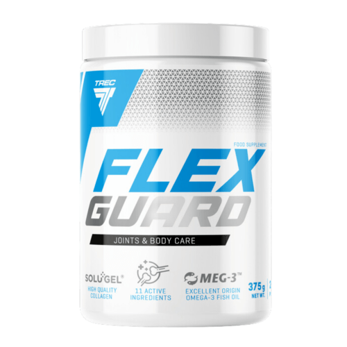 Trec FLEX GUARD представляет собой комплекс, в состав которого входит гидролизат коллагена, МСМ, глюкозамин, L-пролин, Омега-3, хондроитин и гиалуроновая кислота. FLEX GUARD также содержит витамин С - мощный антиоксидант. Он играет важную роль в регуляции окислительно-восстановительных процессов, участвует в синтезе коллагена и проколлагена, обмене фолиевой кислоты и железа, а также синтезе стероидных гормонов и катехоламинов.
